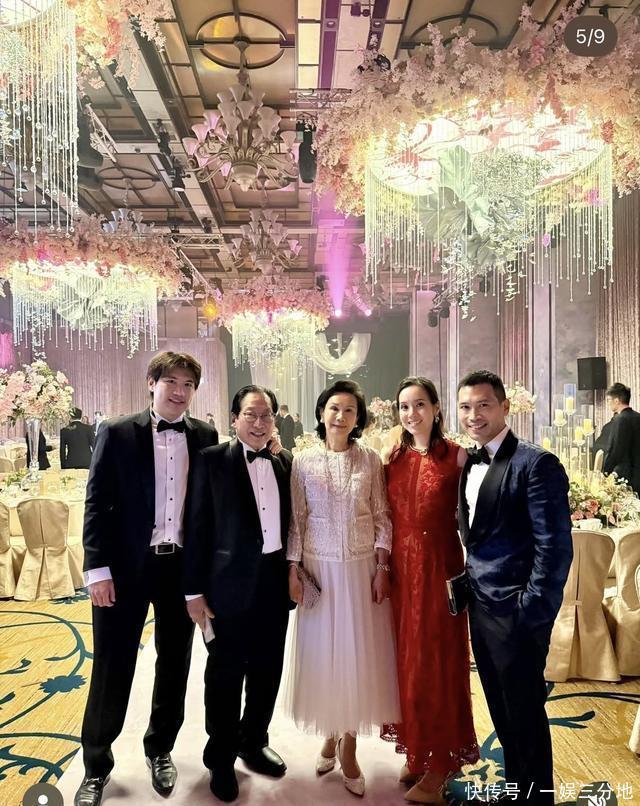 湛琪清分享了很多婚宴场内的照片,当然多是以自家亲戚的合照为主,其中她的表姐汪圆圆也在场。汪圆圆是玩具大王蔡志明的儿媳妇,又是湛琪清的表姐,这关系怎么样都能联系在一起。而湛琪清的夫家与潘迪生是亲戚,湛琪清的婆婆潘金蕙是潘迪生的胞妹,所以湛琪清的丈夫是潘迪生的亲外甥,说白了就是参加亲戚的婚礼。在场内,湛琪清一家打扮隆重,公公婆婆、以及小叔子都罕见露脸。