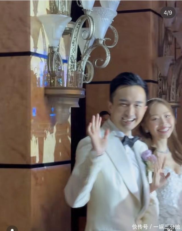 一对新人按照婚礼流程开启婚礼晚宴,两人挽手步入会场,潘冠达有点腼腆,不时地对着宾客挥手示意。从场面来看,婚宴人声鼎沸,至少数百人参加,席上坐着的都是名流、政商,每一位都是盛装出席。而分量最重的嘉宾应该还是香港特首,他也抽空来参加婚礼,还上台致辞发言,分享自己的夫妻相处之道,他的发言生动、有趣,引得场下嘉宾笑声不断。